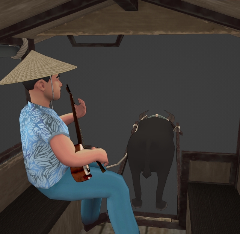 japanese water buffalo cart rider lowpoly rigged